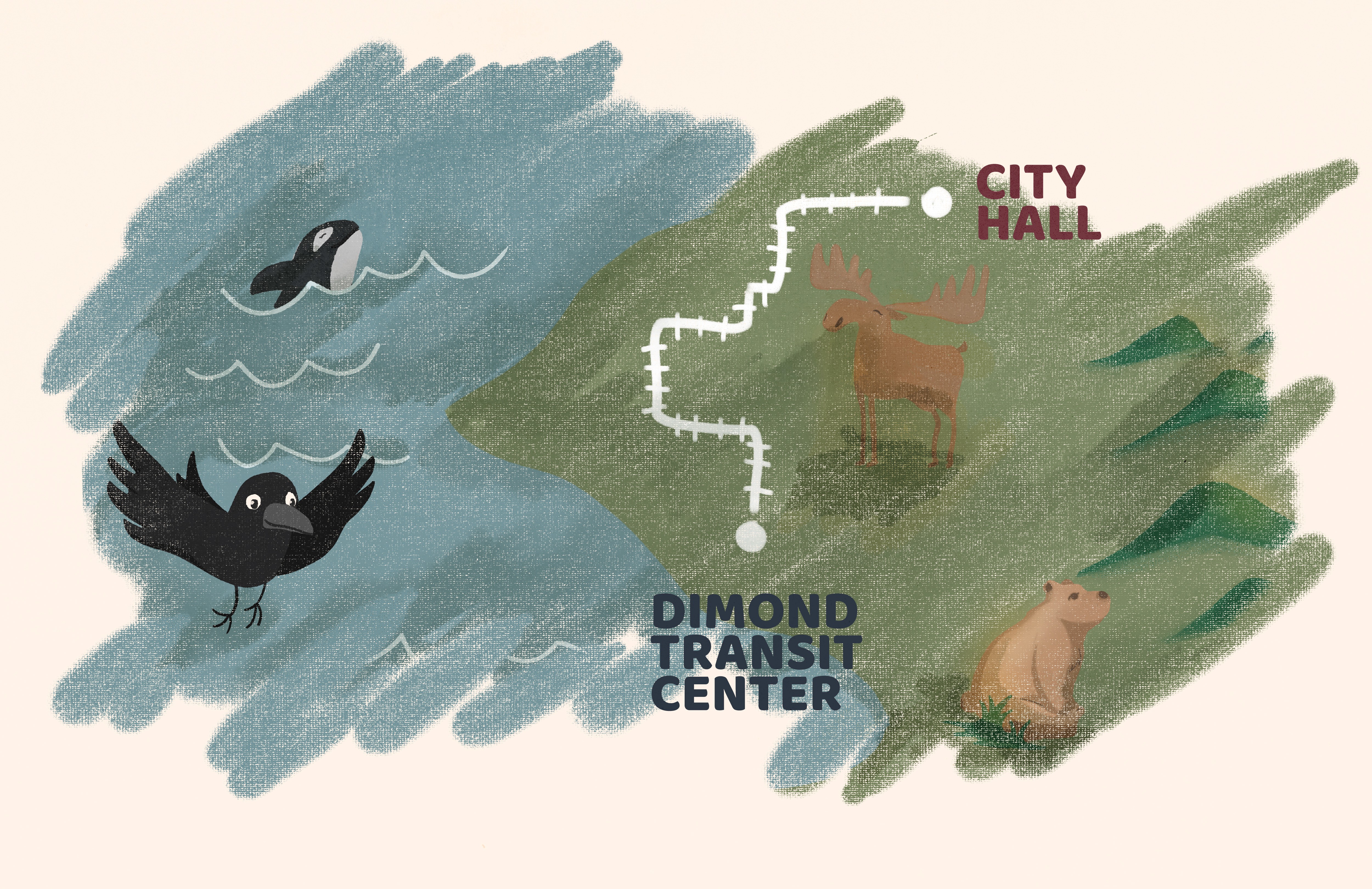About the project: This was a commercial for the new route to the Library. I created the illustrations while our animator did his magic to put together an amazing commercial. The theme was storybook-fairytale.